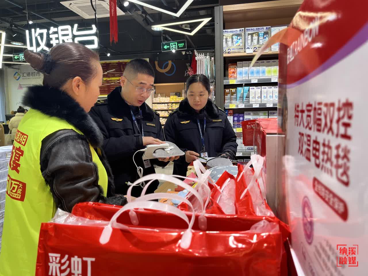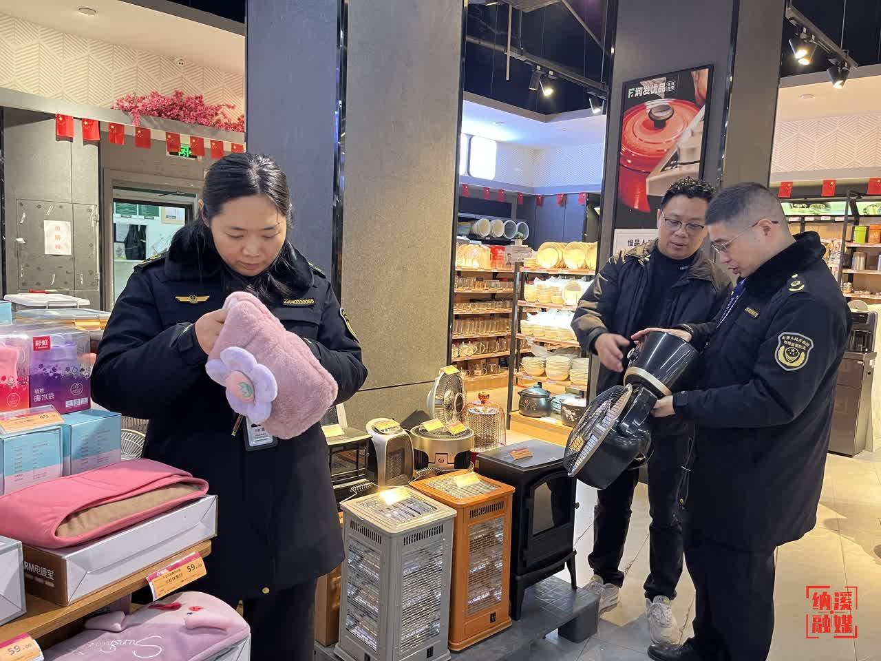 随着气温持续走低,各类取暖设备进入销售和使用高峰。为保障产品质量安全,维护消费者合法权益,连日来,纳溪区市场监督管理局在全区范围内开展冬季取暖设备质量安全专项检查,重点排查电热毯、暖手宝、“小太阳”、暖风机等常用取暖电器,筑牢安全防线,确保群众温暖过冬、平安过冬。