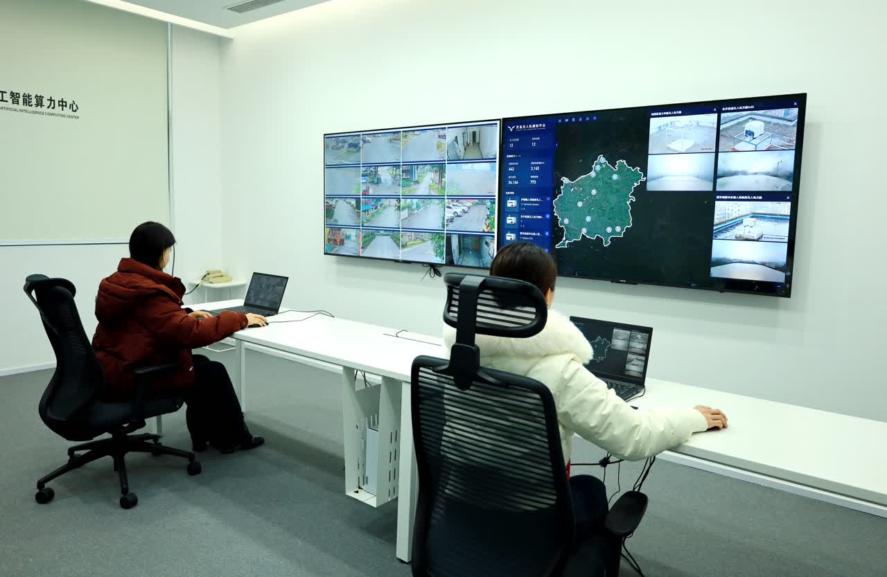 纳溪区推进全域治理智能化项目时,把智慧应急作为突破口,依托川南人工智能算力中心的人工智能底座,创新引入“无人机方舱+AI算法”模式,科学布设无人机方舱,构建“空中巡查网络”,实现对纳溪全域全天候、无死角立体监测。“每架无人机都提前设好路线,定时、定点自动起飞巡查,无需人工操控。巡航结束后,自主返回方舱充电,确保随时待命。”纳溪区安全生产监控中心主任张贵平介绍。