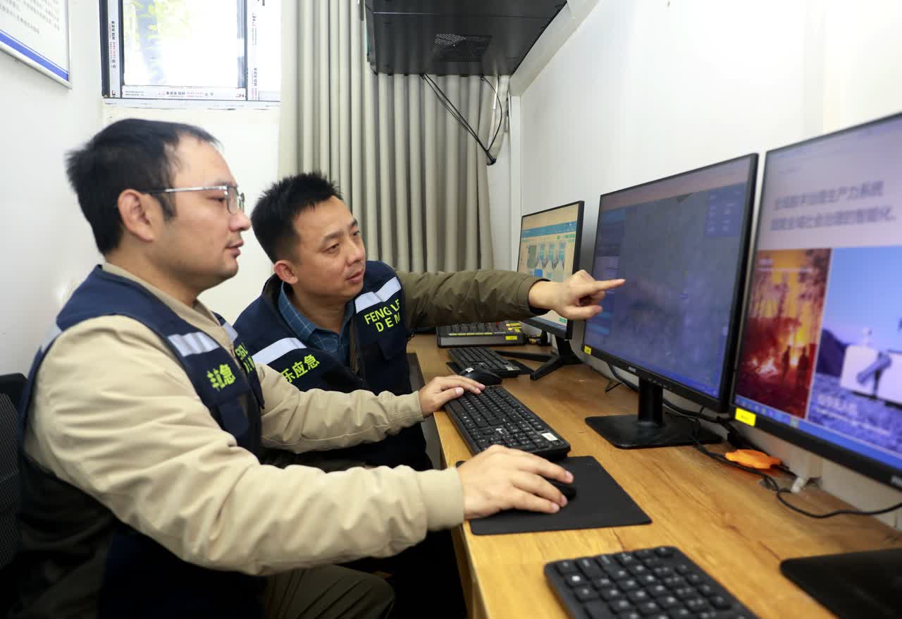 图为工作人员在“无人机+AI”智慧防灭火监控室,依托实时巡弋画面进行融合研判与分级响应,保障算力高效输出。 梁春如 摄