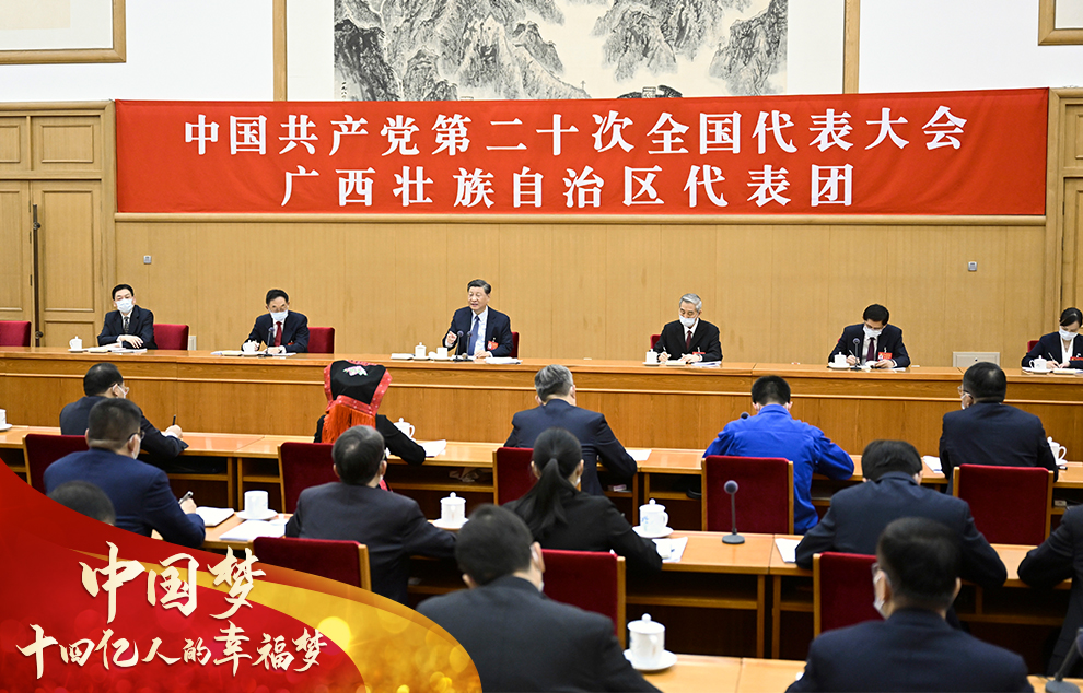 2022年10月17日,习近平同志参加党的二十大广西代表团讨论。