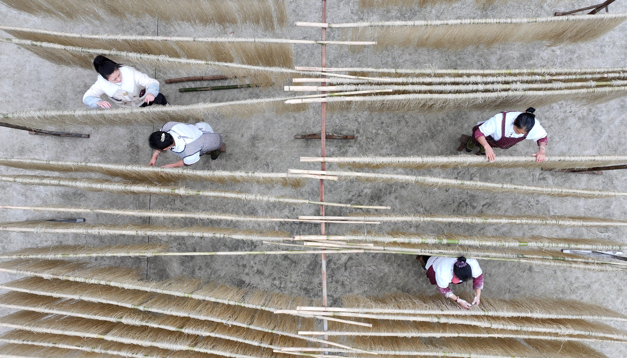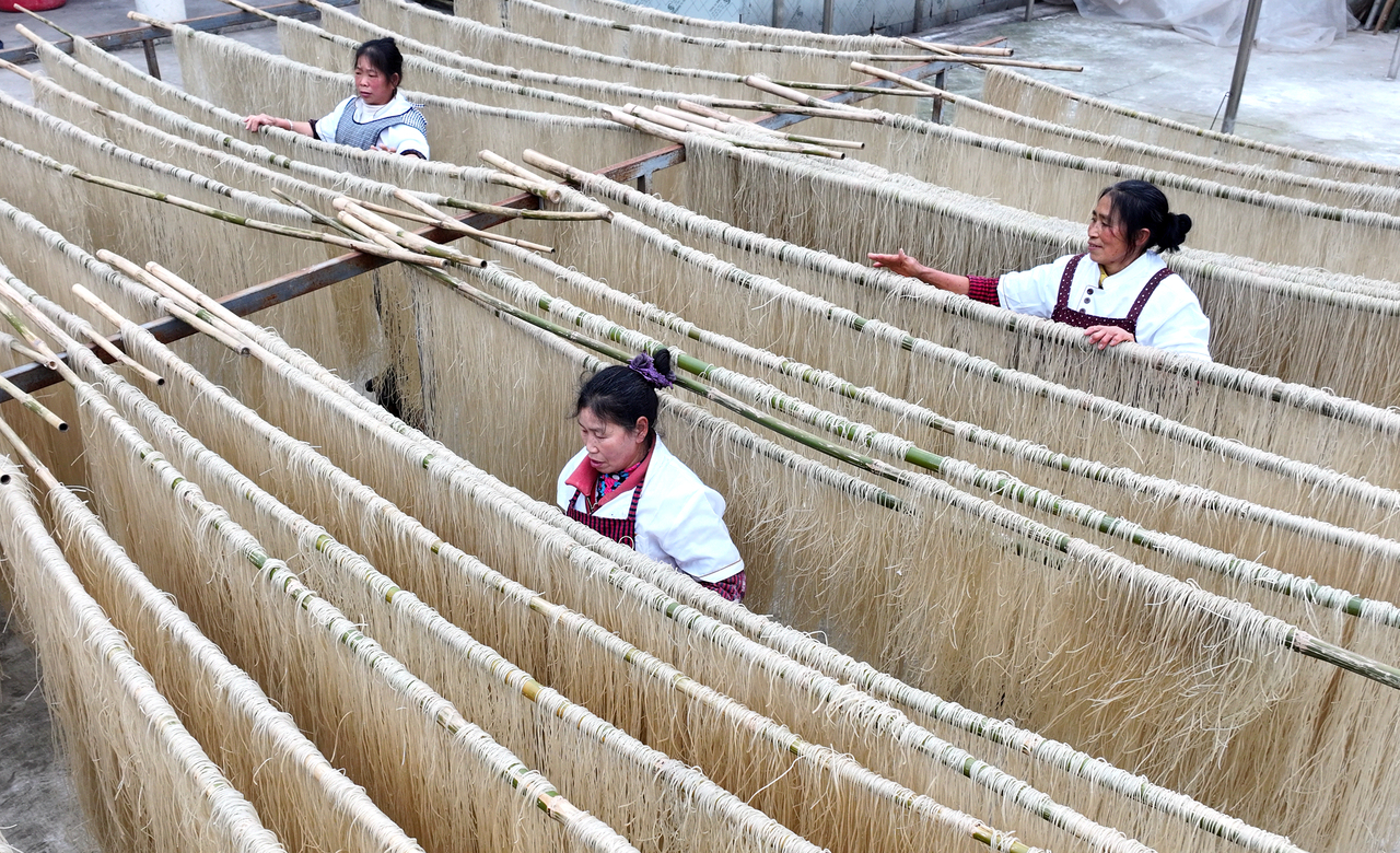 1月7日,四川省泸州市纳溪区打古镇兴莲村村民在晾晒手工粉条。