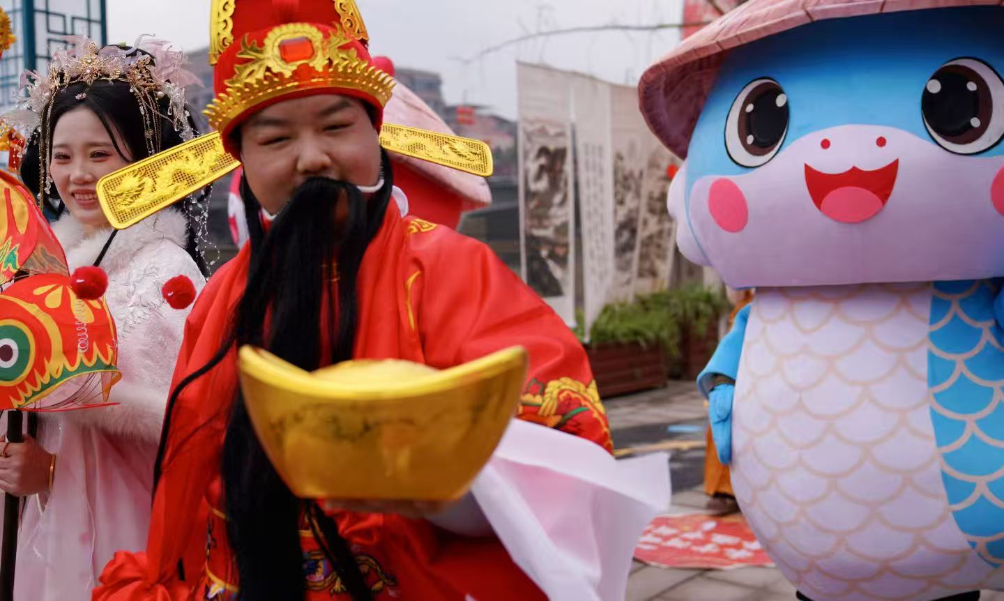 图为鲜鱼巷NPC送福。 魏箐 摄